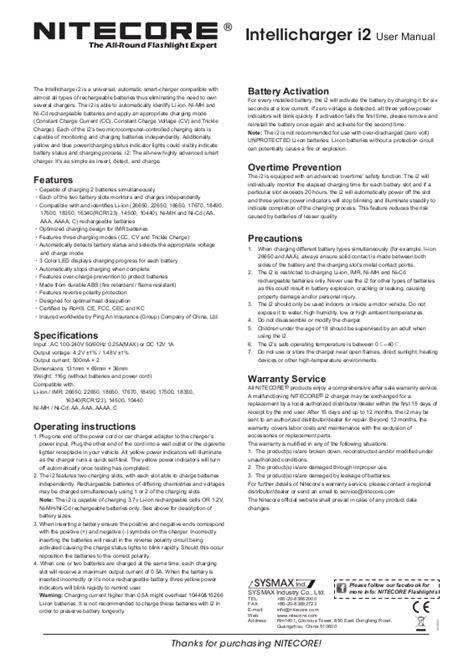 Web all nitecore® products enjoy a comprehensive after sale warranty service. Web nitecore intellicharger new i2: After battery installation, ui2 will test and activate the battery before charging.