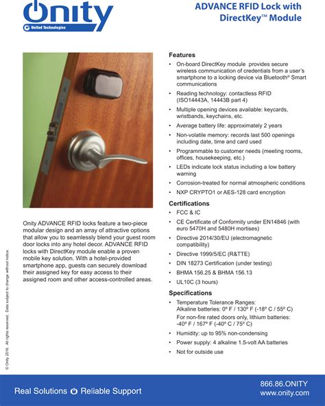 Onity HT34RFIDBT HT34 RFID BTLE User Manual HT RFID lock data sheet 11 15 from usermanual.wiki